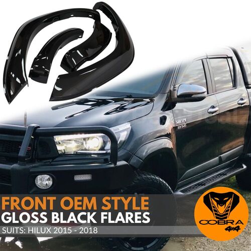 Front Gloss Black OEM Style Flares Suits Toyota Hilux SR5 SR TRD 2015 - 2018 Guard