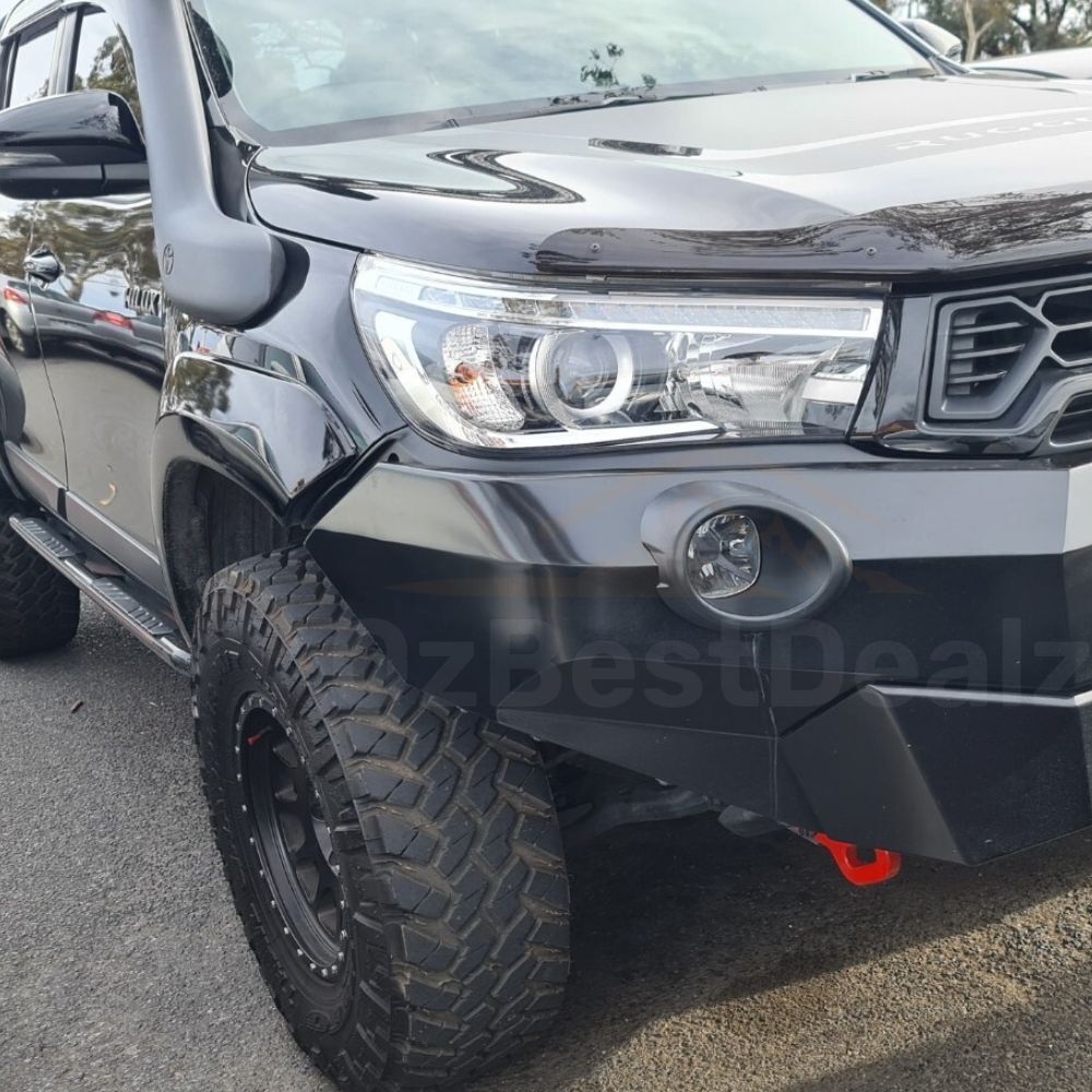 Gloss black finish pairs well with black Hilux models for a sleek, near-matching look.