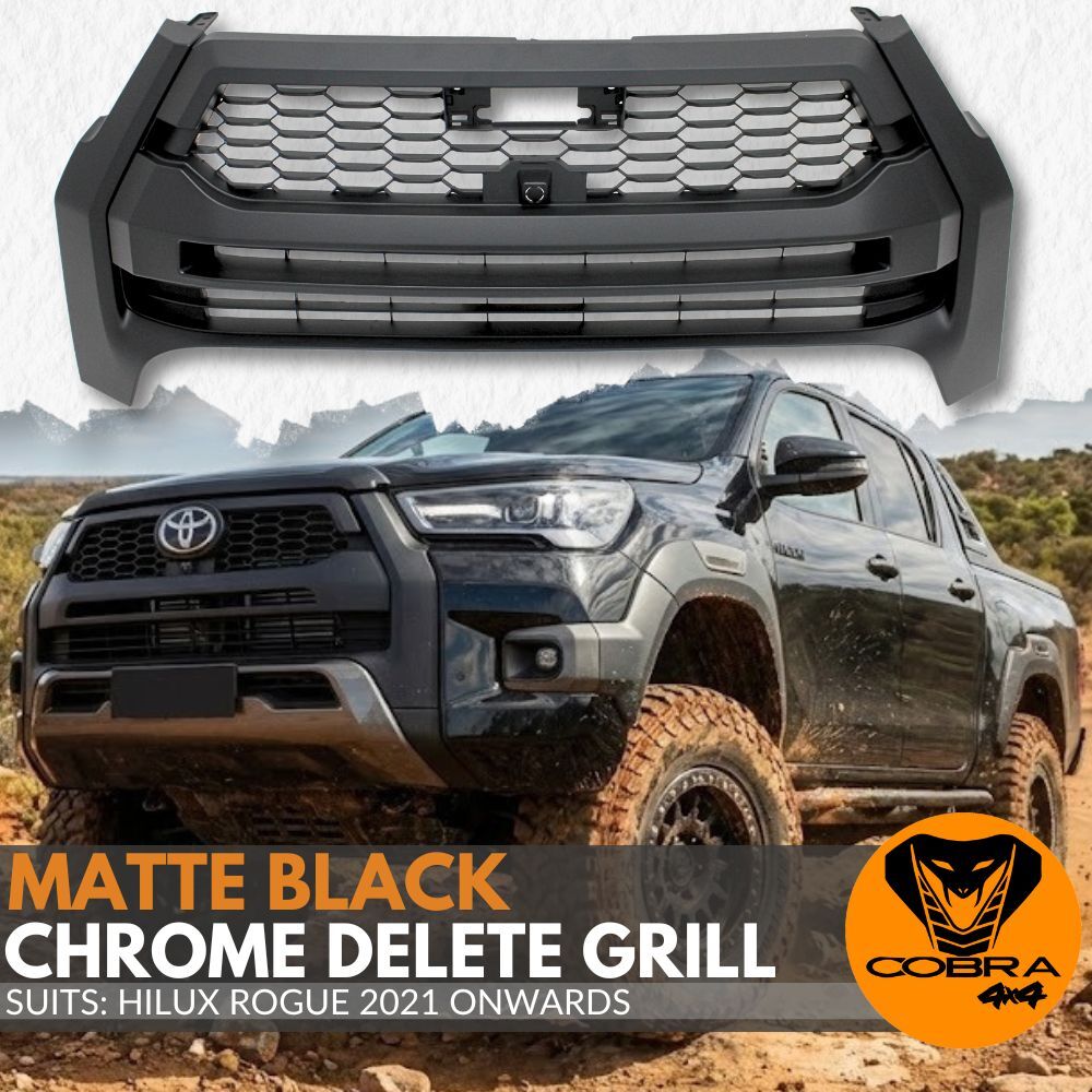 Front Matte Black Chrome Delete Grill Suits Toyota Hilux Rogue 2021 Onwards Grille