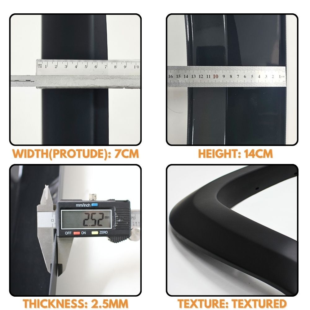 Style Meets Protection: These flares have an attractive black finish that adds to your vehicle's appearance and provides excellent protection against mud and road debris.