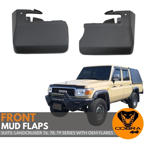 Front Mud Flaps Suits Landcruiser 76 78 79 Series with OEM Style Flares Flare Guards Black 2007 to 2023