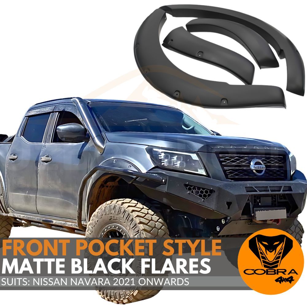 Front Pocket Style Fender Flares suits Nissan Navara NP300 2021 onwards Matte Black Slim Smooth