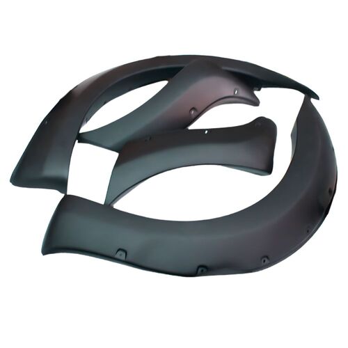 These flares are UV resistant, durable and color does not change. We use ABS flexible plastic. These flares are perfect for extra wheel cover and they are a matte black finish.