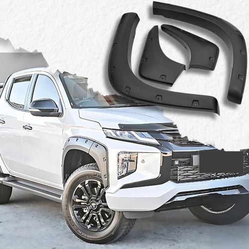 Front Pocket Style Smooth Matte Black Fender Flares Suits Mitsubishi Triton MR 2019 - 2023 with Adhesive tape
