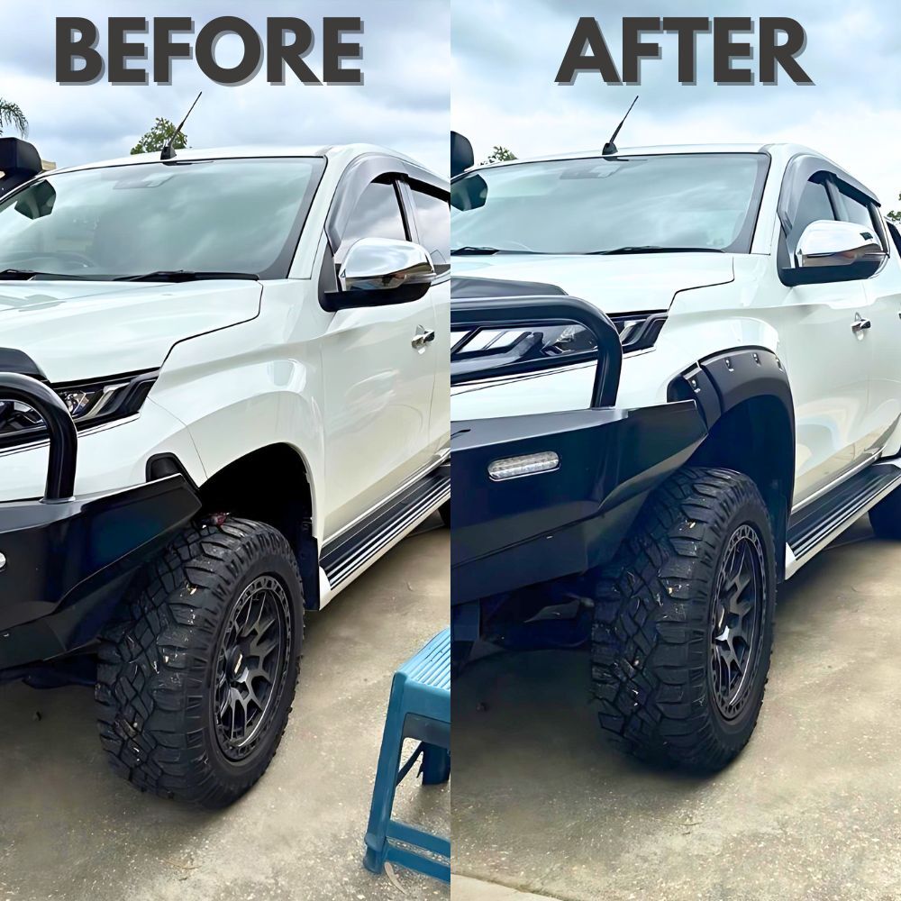 A new look is now available for your Triton MR 2019 - 2023. The Cobra 4x4 Front Pocket Style Smooth ABS Plastic Flares.
