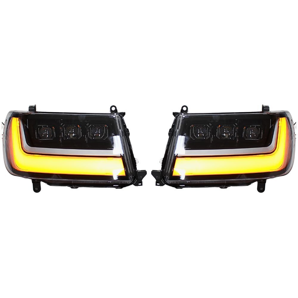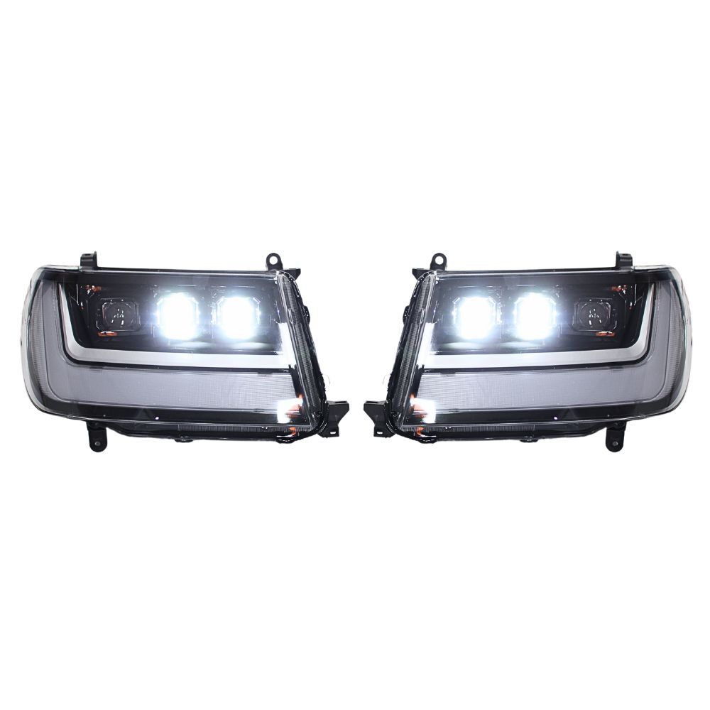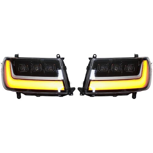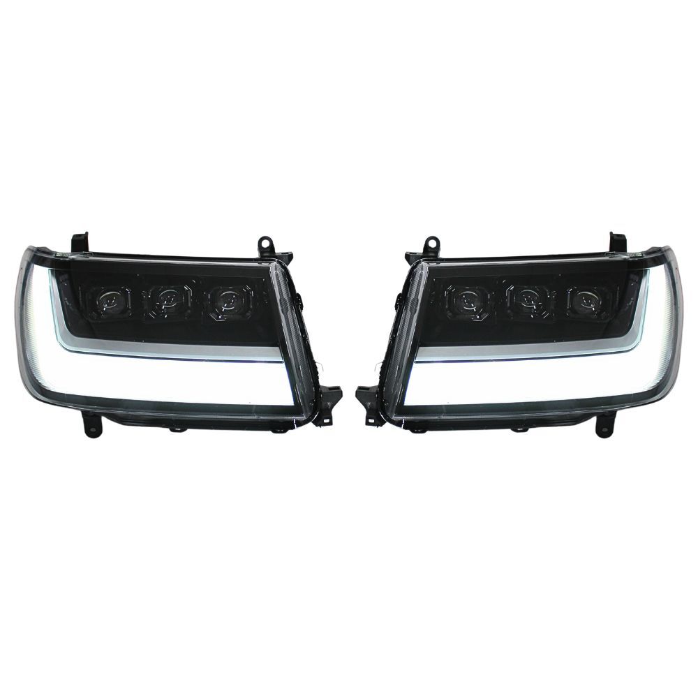 Full LED Triple Lens Head Lights Suits Landcruiser 100 Series DRL Headlights Pair Front Lamp Projector