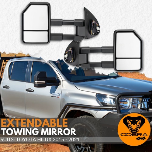 G3 Extendable Towing Mirrors suit Toyota Hilux N80 2015 - 2021 Black Electric LED Indicators Caravan