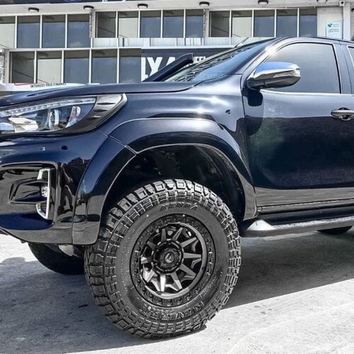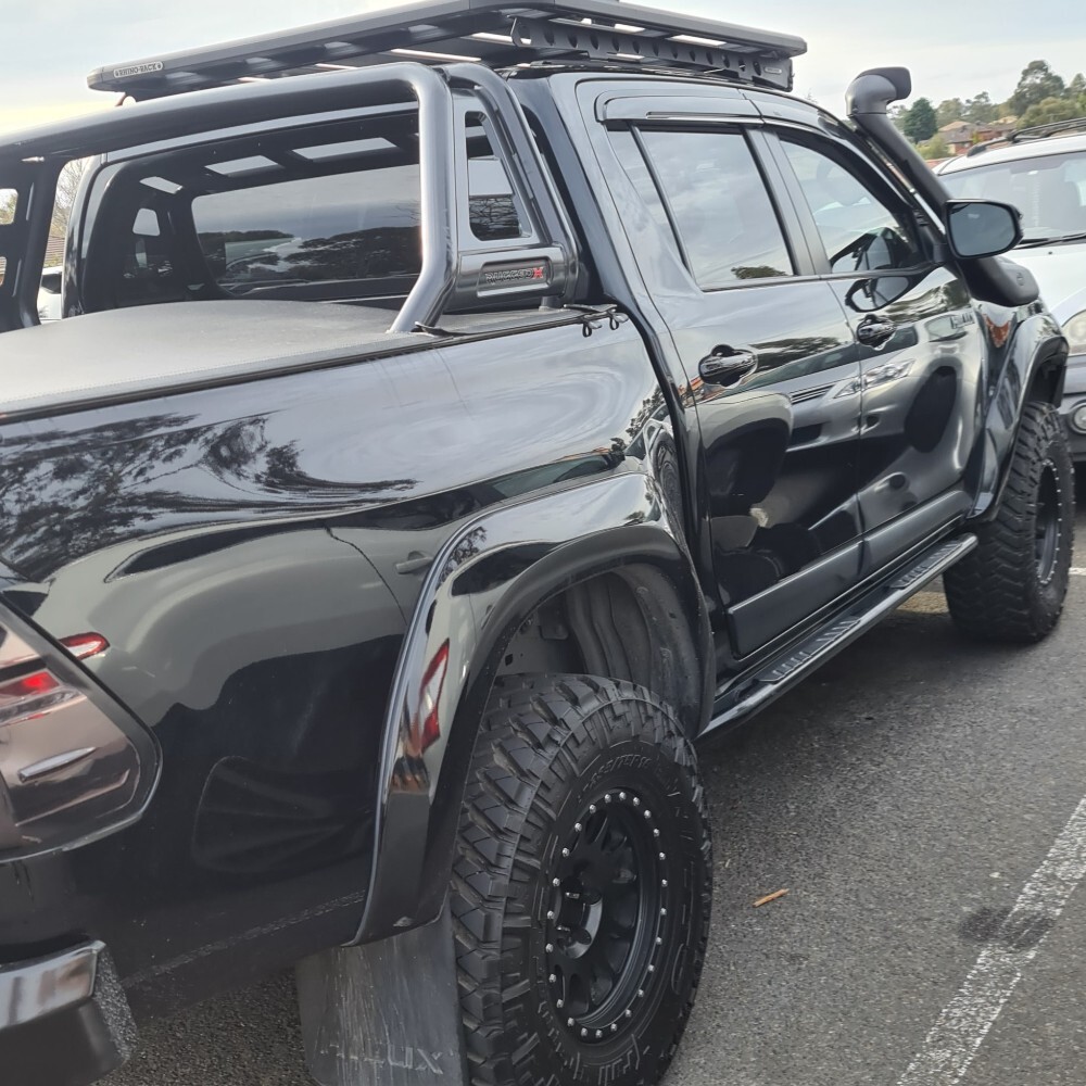 OEM style flares suitable for the Hilux Late 2015 - Early 2018 dual cab (before 2018 facelift model) Gloss black fender flares. These are the first on the market for those who want their Hilux to stand out from the crowd. They add the extra few cm wheel cover you need to stay legal. We also stock them in a matte black finish.