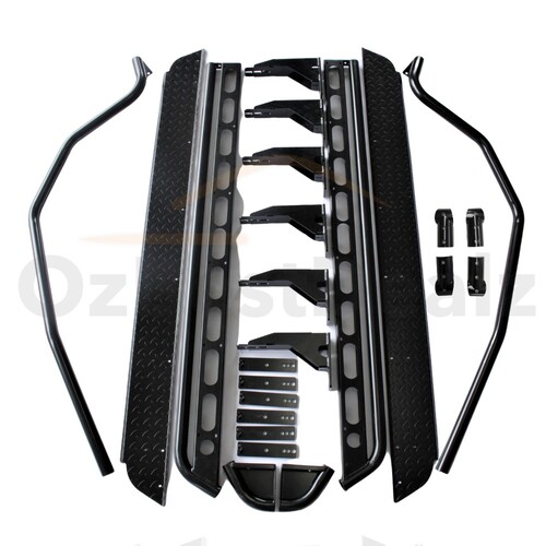 Made from Heavy-duty powder-coated Steel weighing in at 60kg total for both sides, these rock sliders are sure to impress.