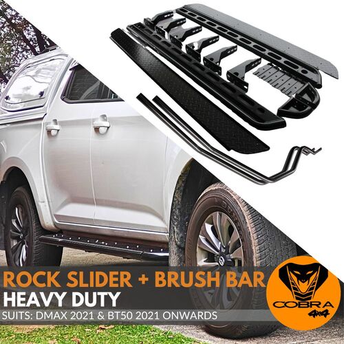 Heavy Duty Cobra 4x4 Rock Sliders + Brush bar fits Isuzu Dmax 2021+ and BT50 2021 Onwards Side Steps