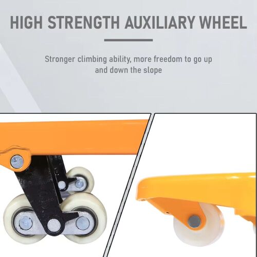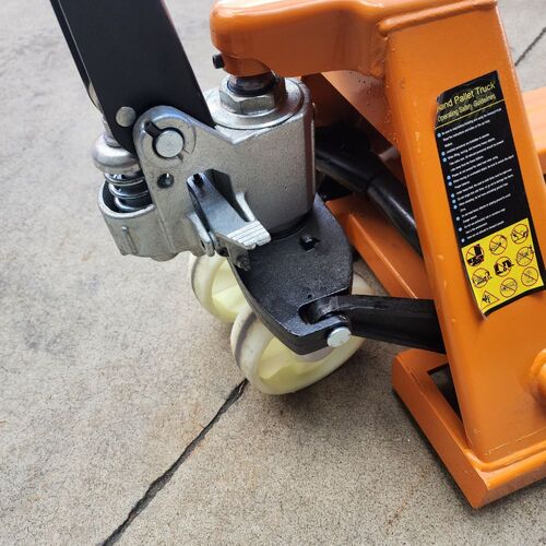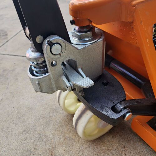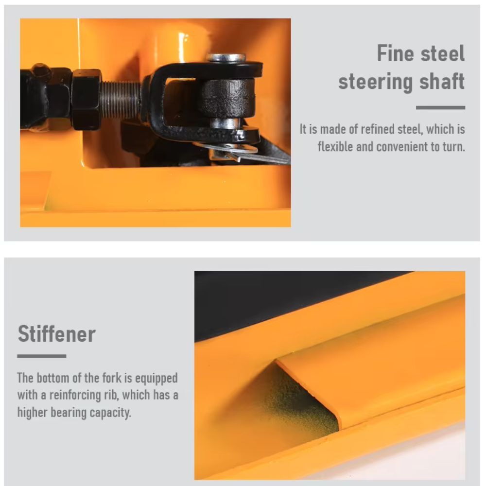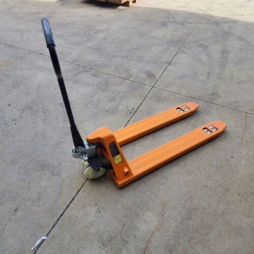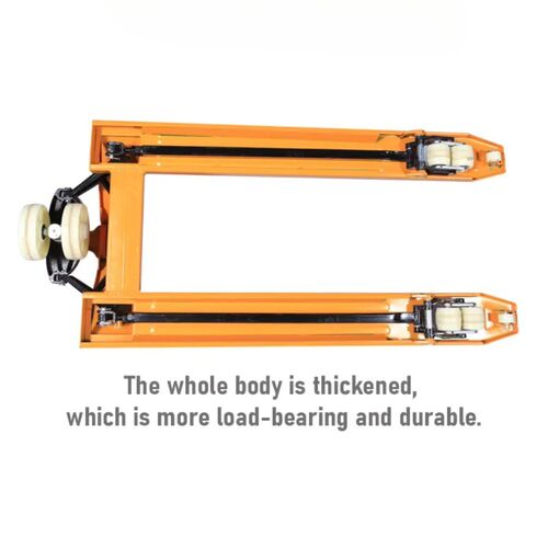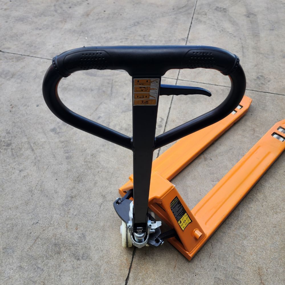 The pallet jack is a versatile and durable tool designed for efficient material handling in various environments. It features an integrated hydraulic pump for reliable lifting performance and is equipped with entry and exit rollers for smooth pallet access. The ergonomic handles ensure comfortable operation, reducing strain on the operator during use. Constructed with robust 3mm steel frames and reinforced forks, this pallet jack is built for reliability and long-term use.