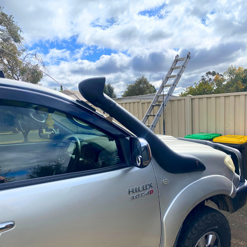 The All-New Cobra 4x4 J-Spec Snorkel has a stylish design that makes you stand out from the crowd. This Snorkel is suitable for the Toyota Hilux 2005-2015. They are made from Linear Low Density Polyethylene (LLDP) which is a strong, durable plastic widely found in the auto parts industry for items that require long life, impact resistance and good UV durability. Typical wall thickness of our snorkels is 5-6mm which will provide maximum resistance against impact damage. With our snorkels, all parts included are designed to fit correctly, if installed properly, it will provide water and dustproof path for your air intake system. This will save your engine against costly repairs from water damage, and reduced air filter servicing costs as it will draw cleaner air from its elevated intake. This is particularly beneficial while following other vehicles on dry dusty roads.