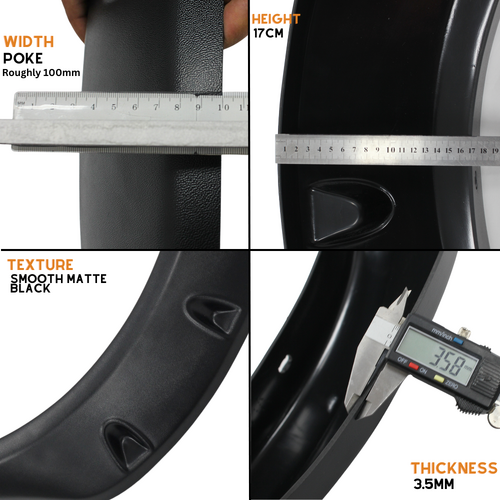 Designed specifically for off-roading while adding an aggressive look and complimenting oversized tyres. Made from high quality 3.5mm thick ABS plastic and provides maximum protection to your vehicle while going off-road from mud and debris.