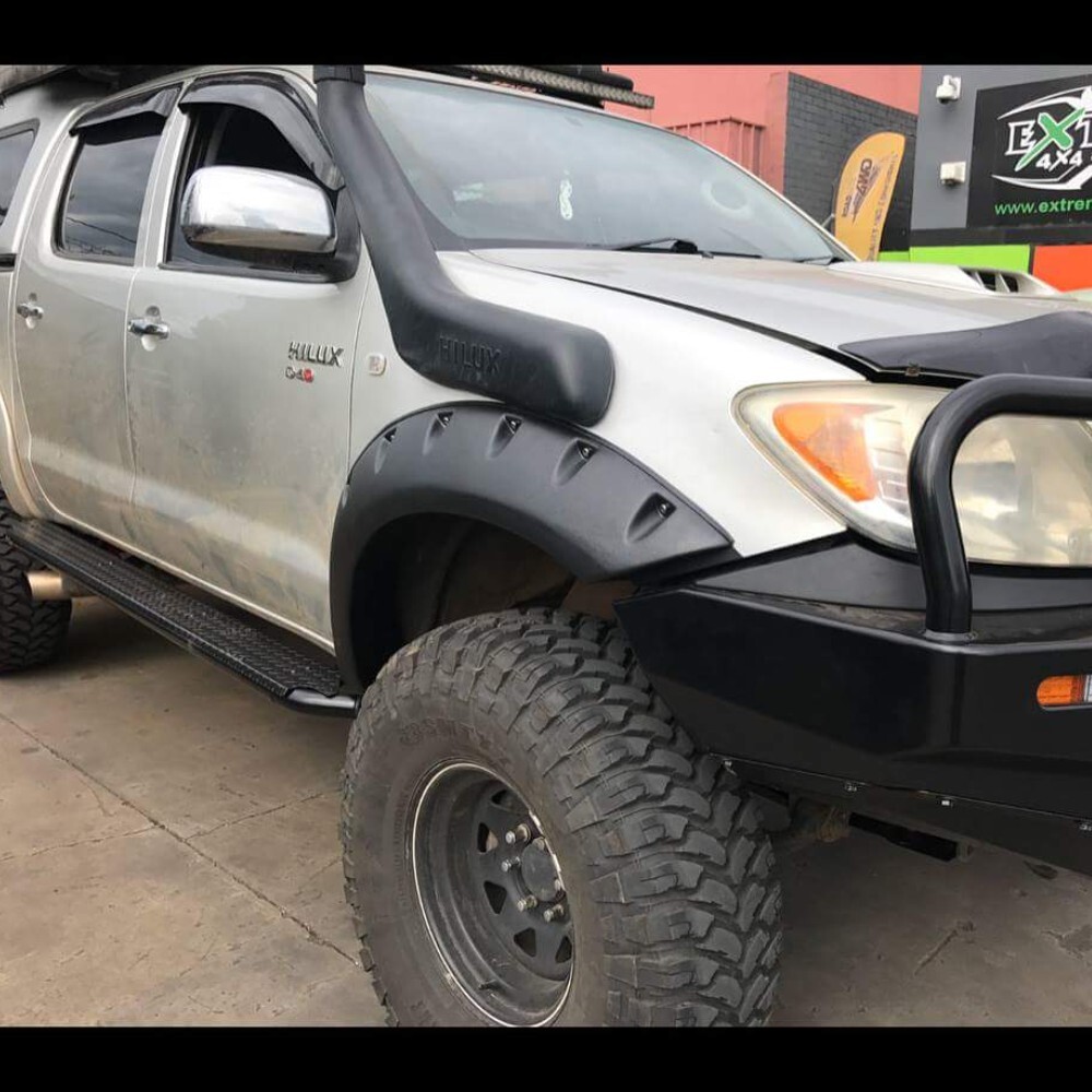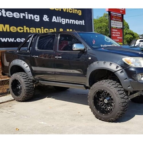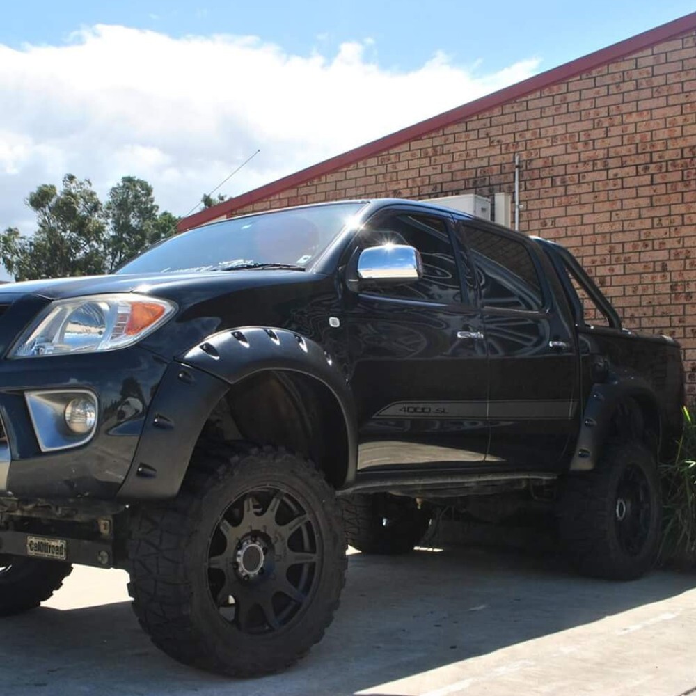 Our Cobra 4x4 Fender Flares are the best on the market. Why pay $600 when you can get the exact same flares for a fraction of the price. These flares suit the Toyota Hilux SR/SR5 2005 - Early 2011 dual cab. They are UV resistant, tough, durable and colour does not change like other cheap replicas. Just what you need for all your outdoor 4WD trips. These flares are specially made for off-roading. The fenders are drilled into your guards so they can hold really well and can literally take bumps and hits without damage due to they're tough and flexible design. Thickest ABS plastic currently on the market we guarantee this product is the best in this design