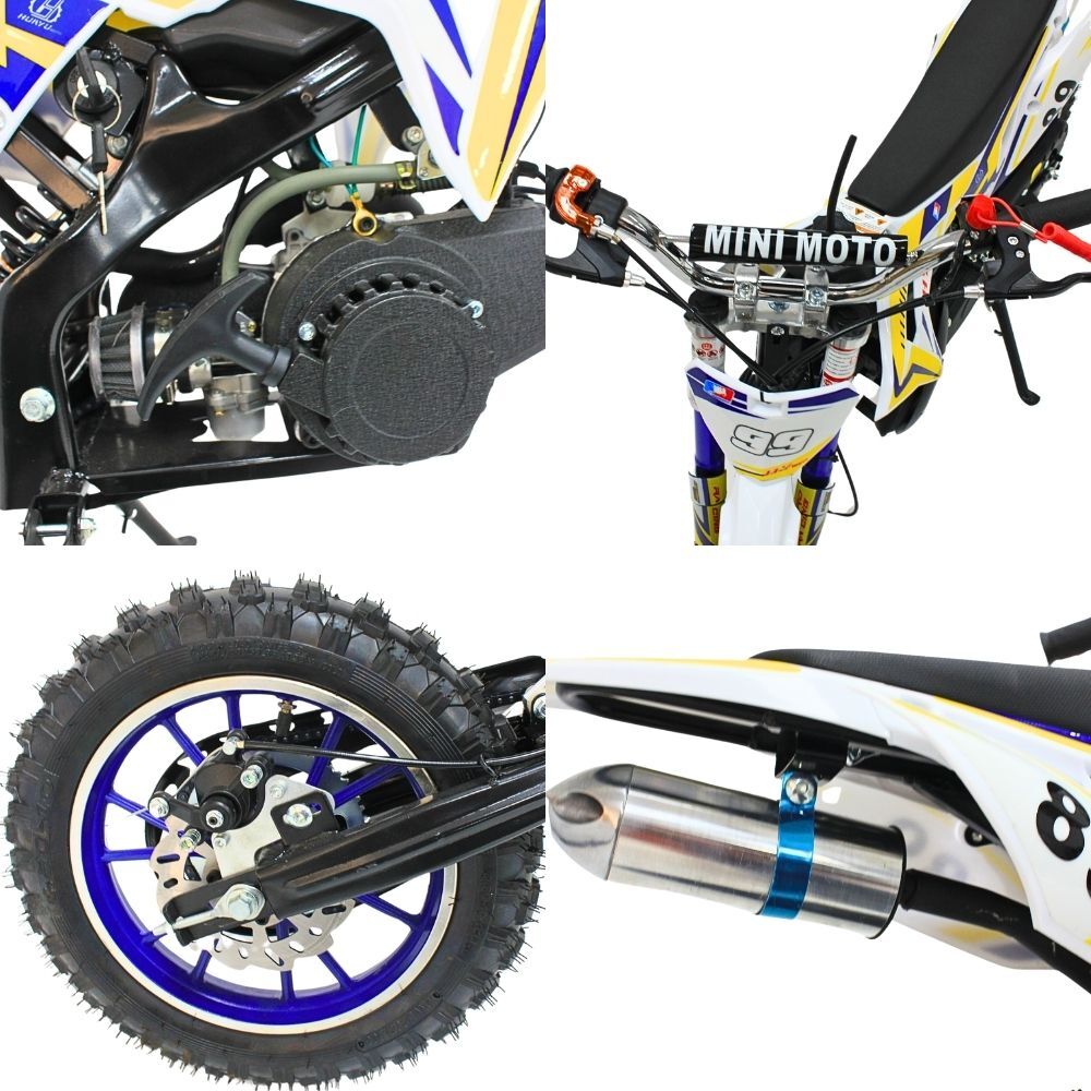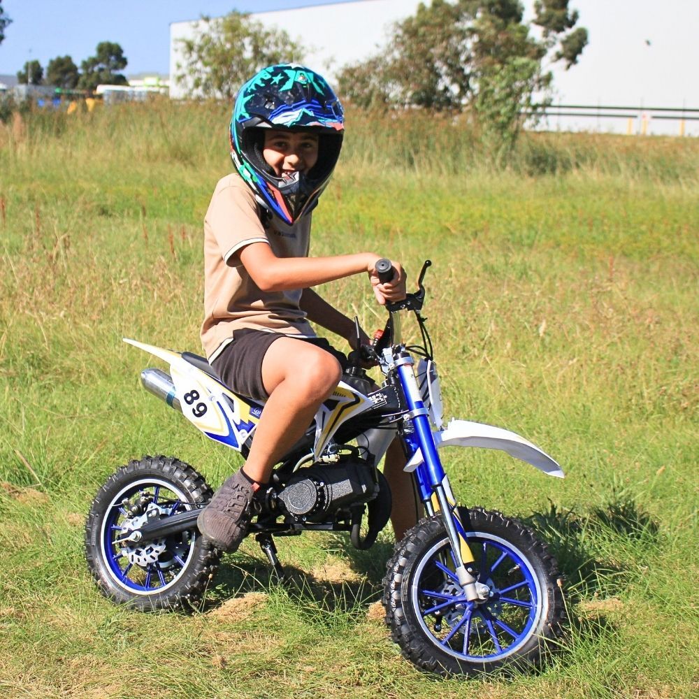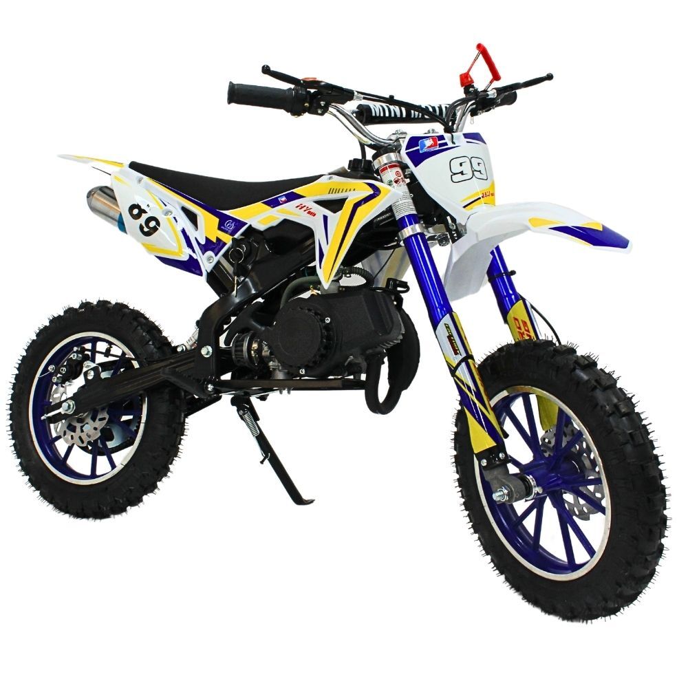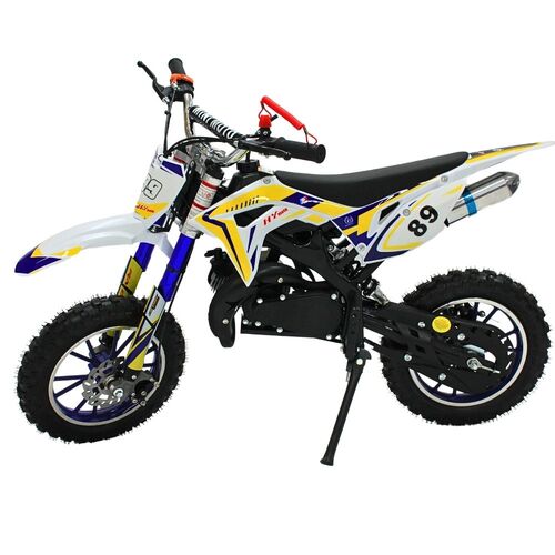 Kids 49CC Petrol Dirtbike Dirt Bike Ride On 2 Stroke Off Road Steel White Blue Yellow