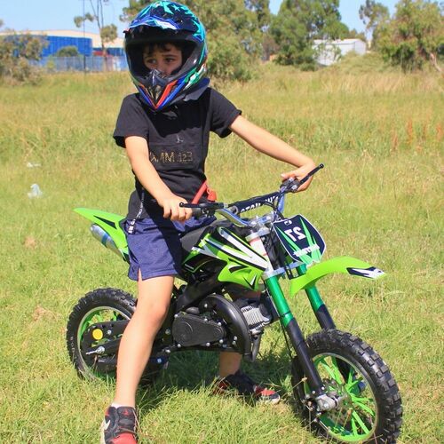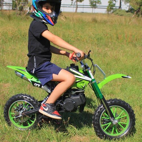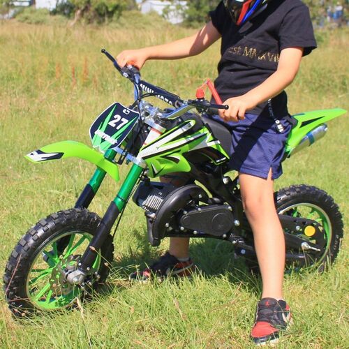 Kids 49CC Petrol Dirtbike For Kids Ride On Bike 2 Stroke Off Road Steel Green Dirt Motorbike