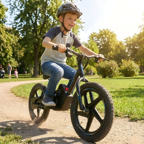 Embark on thrilling journeys with this sleek black wonder, Equipped with a 250W 21V Brushless Motor and a Removable Lithium-Ion 21V/5.4Ah Battery, experience a smooth and efficient ride every time and crafted with a High-Strength Steel frame, our bike strikes the perfect balance between durability and agility, making it suitable for riders up to 50kg perfect for kids aged 2-6.