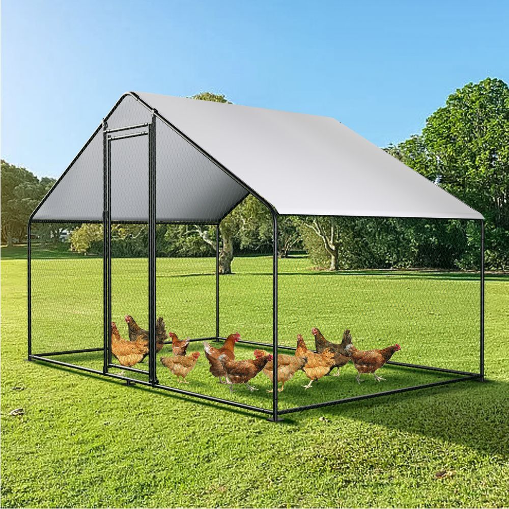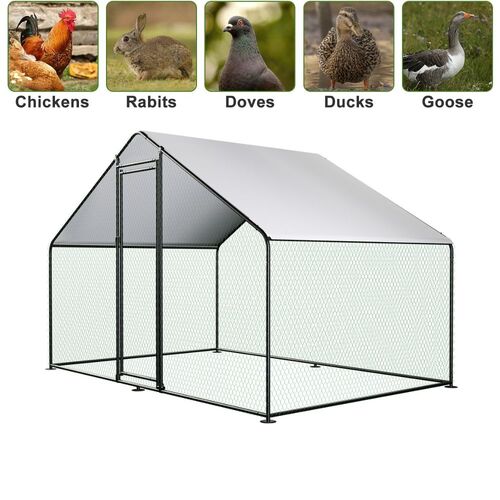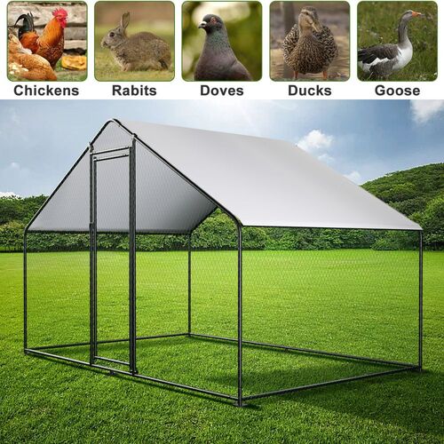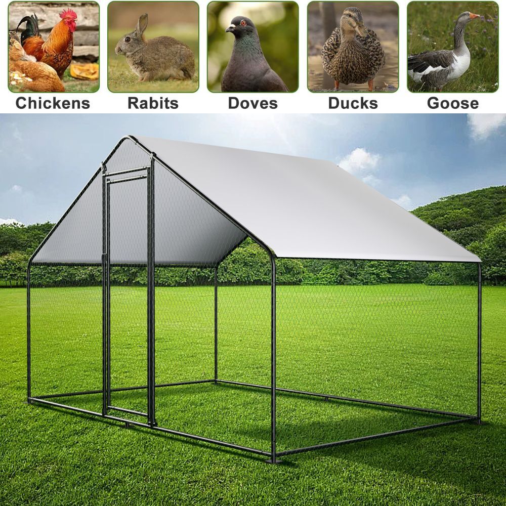 LARGE BLACK 15 Chicken Coop Cage House 1 Rooms Rabbit Guinea Pig Walk-in 2 x 3 x 2M Steel Metal Run Enclosure Poultry Coup
