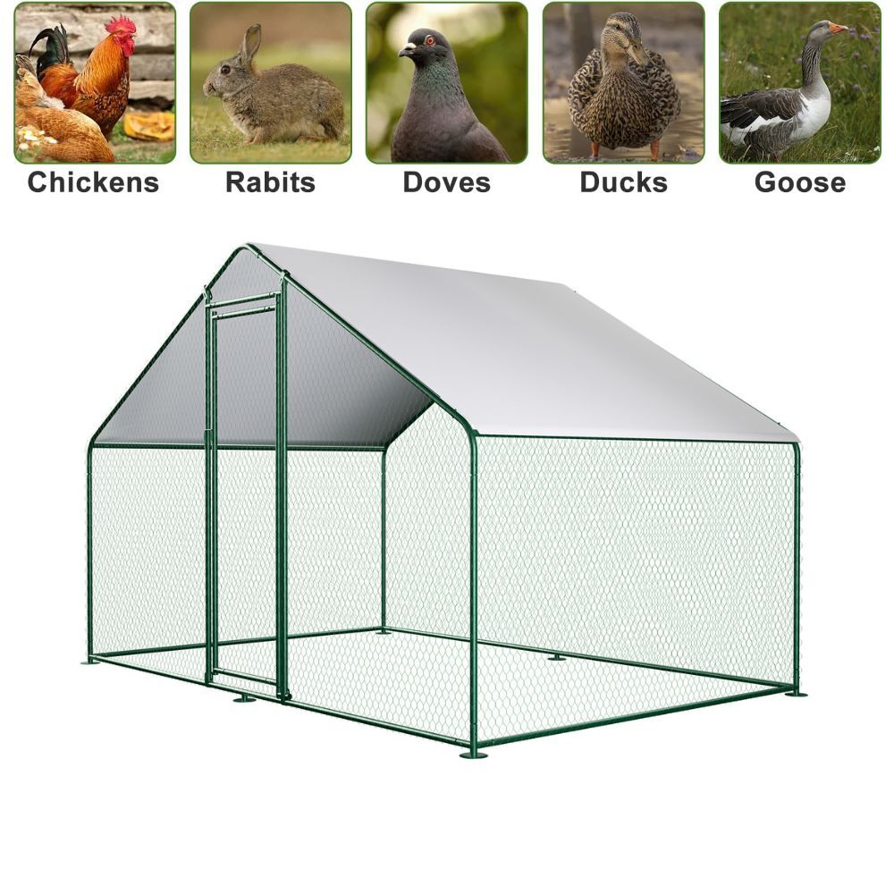 LARGE GREEN 15 Chicken Coop Cage House 1 Rooms Rabbit Guinea Pig Walk-in 2 x 3 x 2M Steel Metal Run Enclosure Poultry Coup