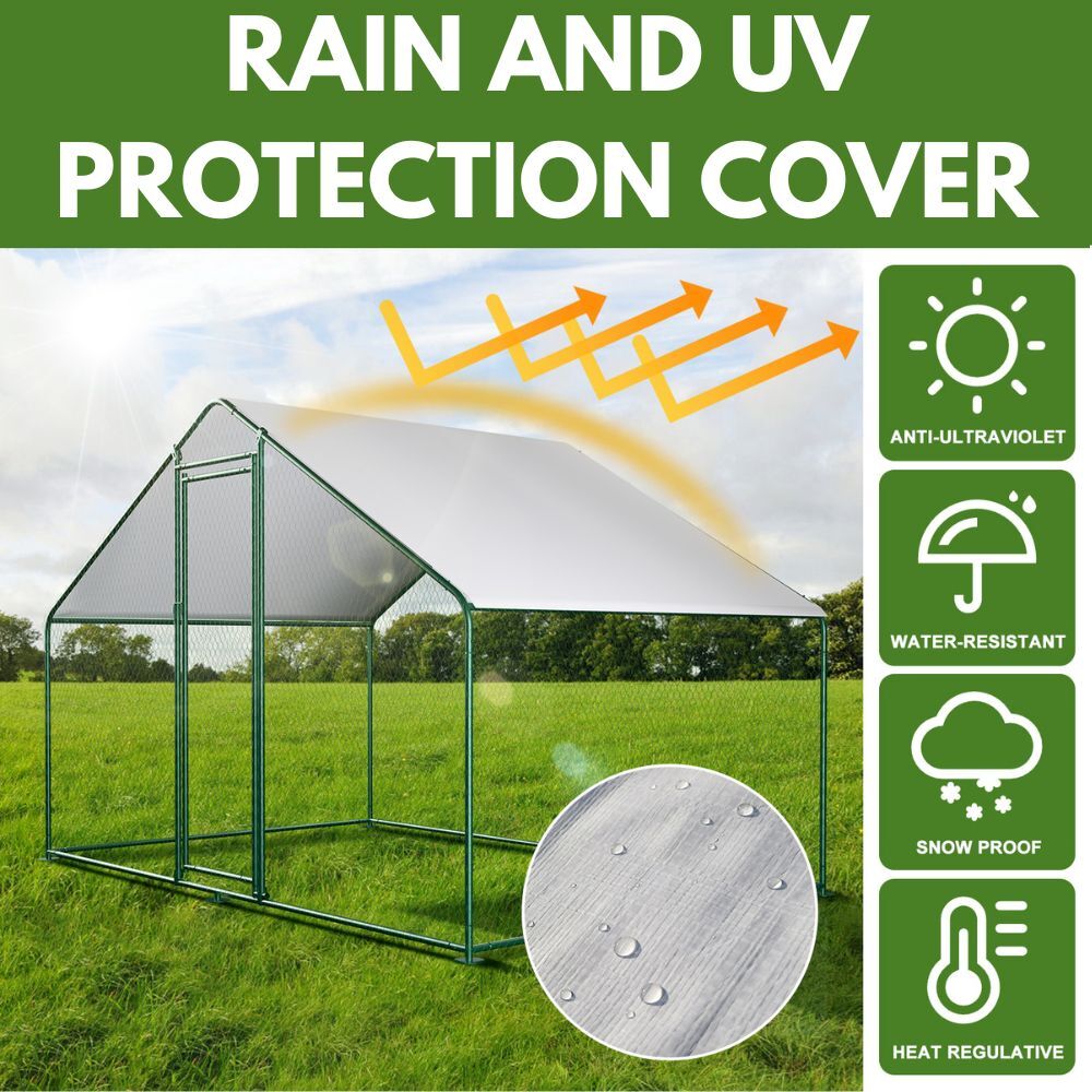 But that's not all! With a convenient walk-in design, accessing your coop has never been easier. Simply step inside through the secure door and experience the convenience firsthand. Plus, with the included PVC rain and UV ray cover, your poultry pals will stay cozy and dry, rain or shine.