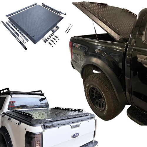 Cobra 4x4 lockable aluminium tub hard lid cover with gas struts suitable for Ranger dual cab PX PX2 PX3 and BT50 2012-2019 models.