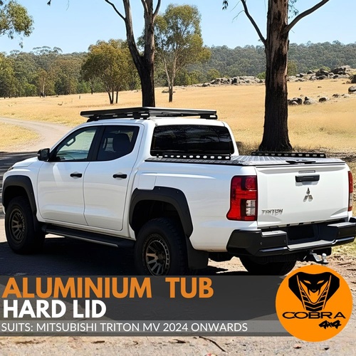 Cobra 4x4 lockable aluminium tub hard lid cover with gas struts designed specifically for the Mitsubishi Triton MV 2024 Onwards dual cab models