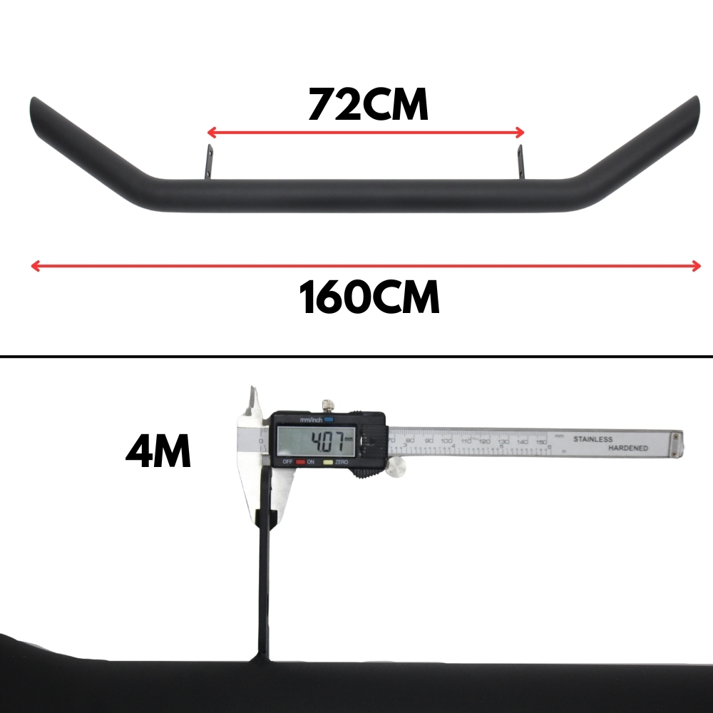 This Nudge Bar is made with black powder-coated steel for long life and increased durability.