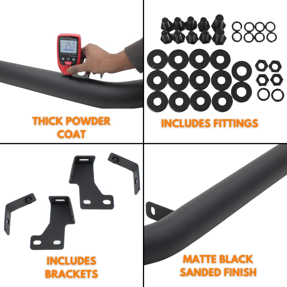 This Nudge Bar is made with black powder-coated steel for long life and increased durability.