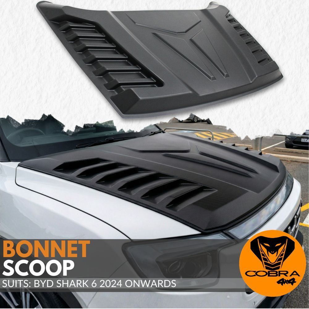 Cobra 4x4 Matte Black Bonnet Scoop Protector to suit your BYD Shark 6 2024 Onwards models. Designed to enhance the look of your ride and add a tough look to stand out from the crowd.