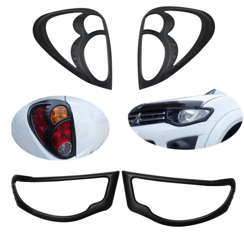 Matte Black Head Tail Light Trims Suit Mitsubishi Triton MN ML 2006 2007 2008 2009 2010 2011 2012 2013 2014 Cover Protector Front Rear