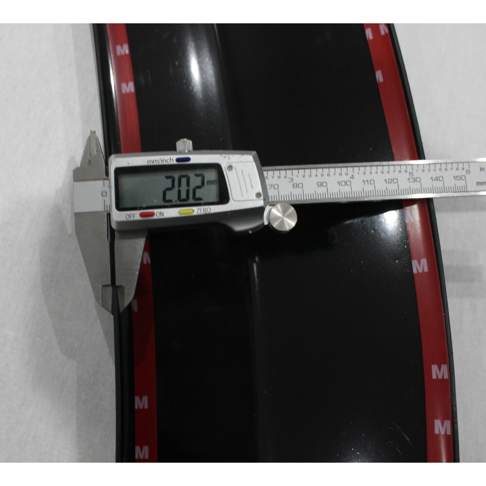 Please refer to the ad features for the overall flare width, measured from where they start on the metal guards. Measure from the top to see how much wheel coverage is added. as demonstrated in this video.