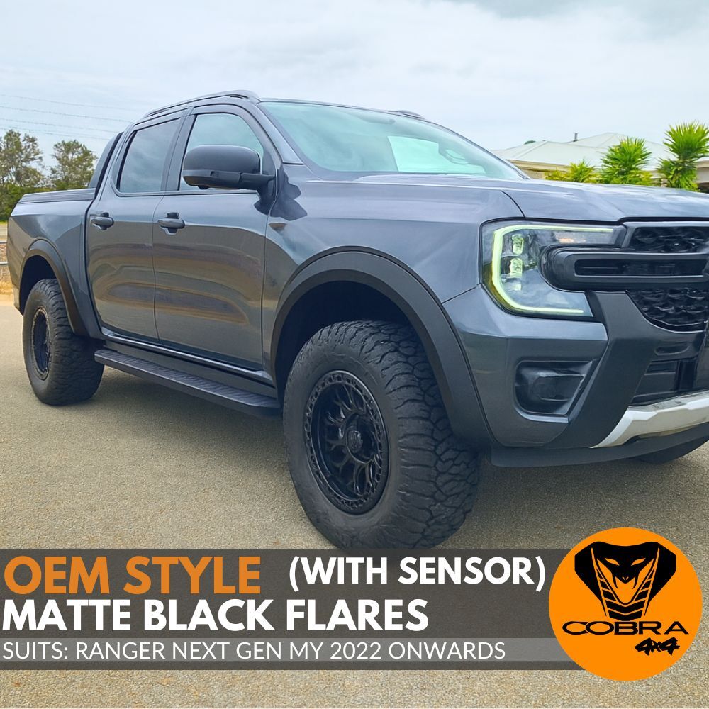 Matte Black OEM Fender Flares With Sensor Fits Ford Ranger Wildtrak Next Gen 2022 + MY22 Dual Cab