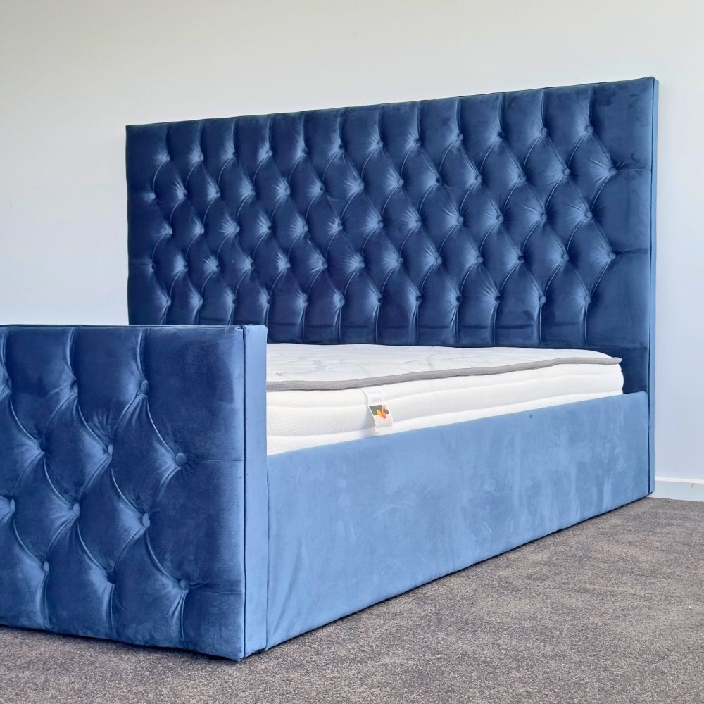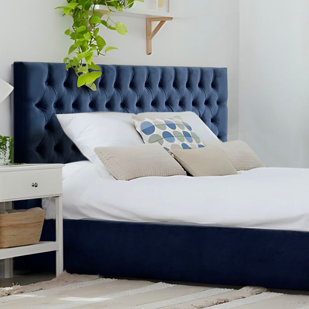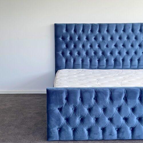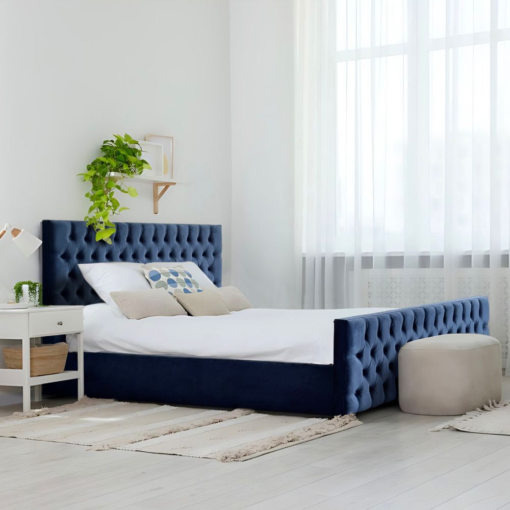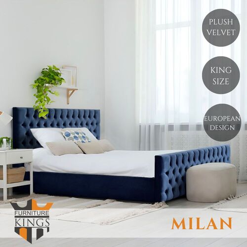 Update your bedroom with our contemporary Milan king-size bed! Upholstered with a soft-to-touch plush velvet in a rich blue color with fabric button tufts, you can't go wrong with this beautiful and simple design for your home.