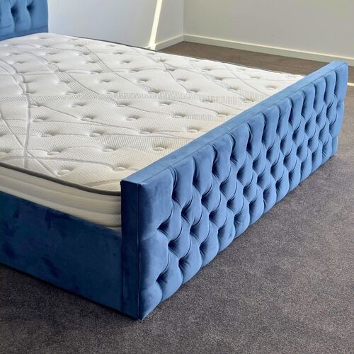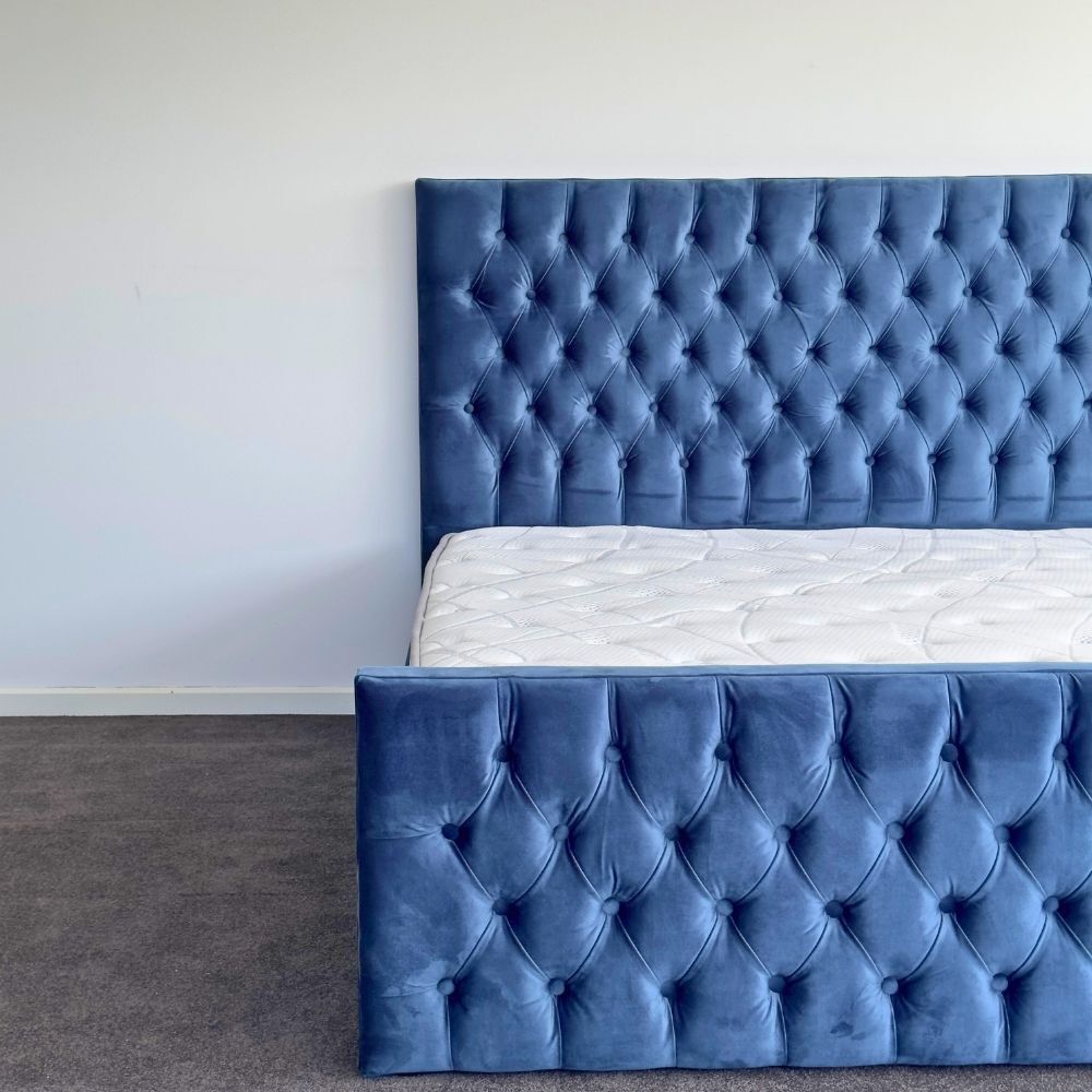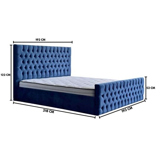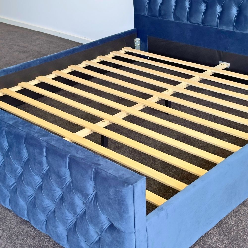 Milan King Bed Frame Studded Fabric Blue Plush Velvet Upholstered Tufts