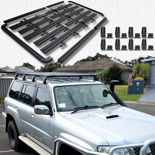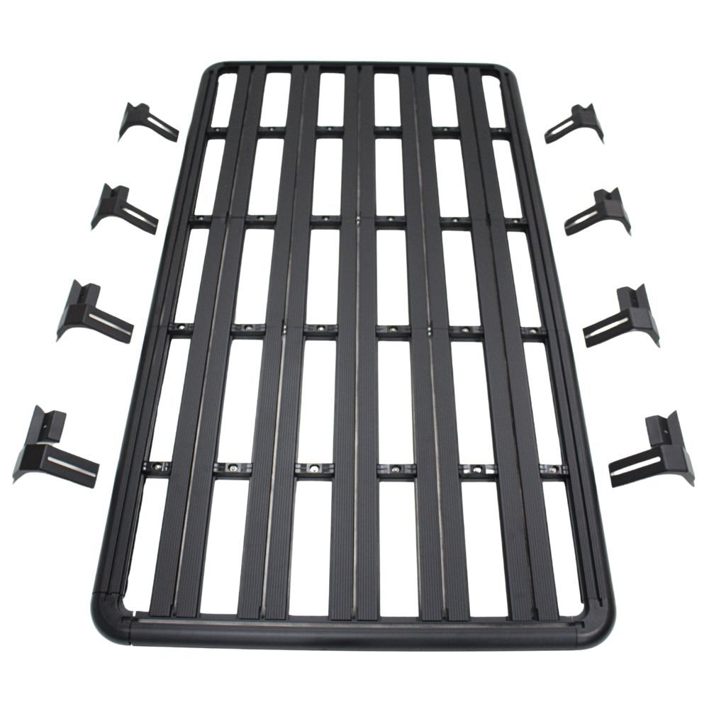 Modular Panel Unassembled Aluminium Flat Roof Rack Suits Landcruiser 80 90 Series Prado Patrol GU GQ 220cm x 123cm Tradie Black Platform