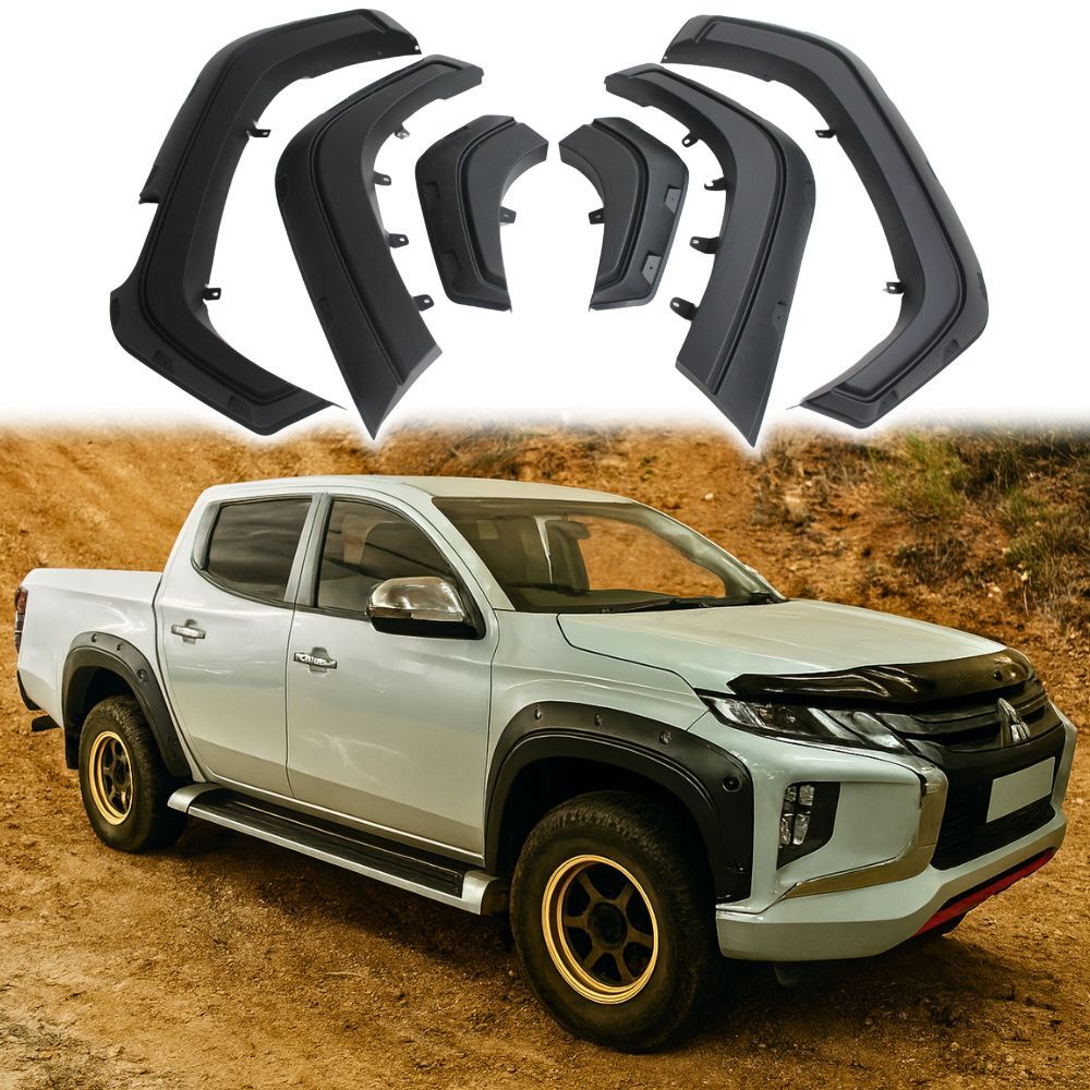 Monster Pocket Style Matte Black Fender Flares Suits Mitsubishi Triton MR 2019 - 2023 with Adhesive tape