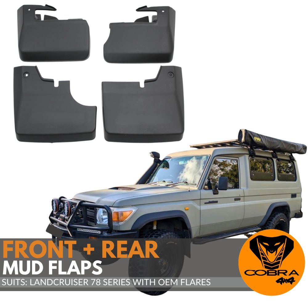 Mud Flaps To Suit Landcruiser 78 Series with OEM Style Flares Flare Guards Black 2007 to 2023