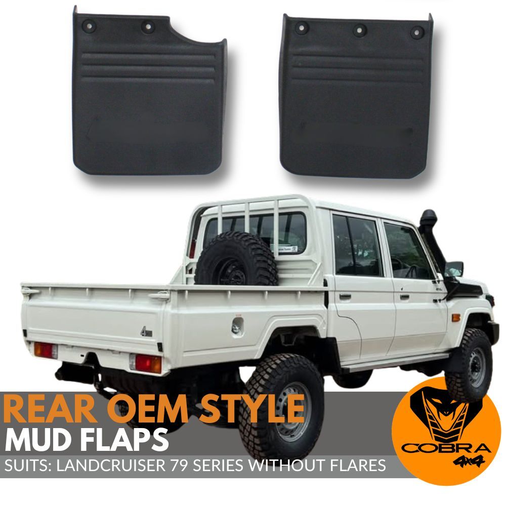 No Flare OEM Style Rear Mud Flaps Suits Landcruiser 79 Series Rear Tub Guards Black
