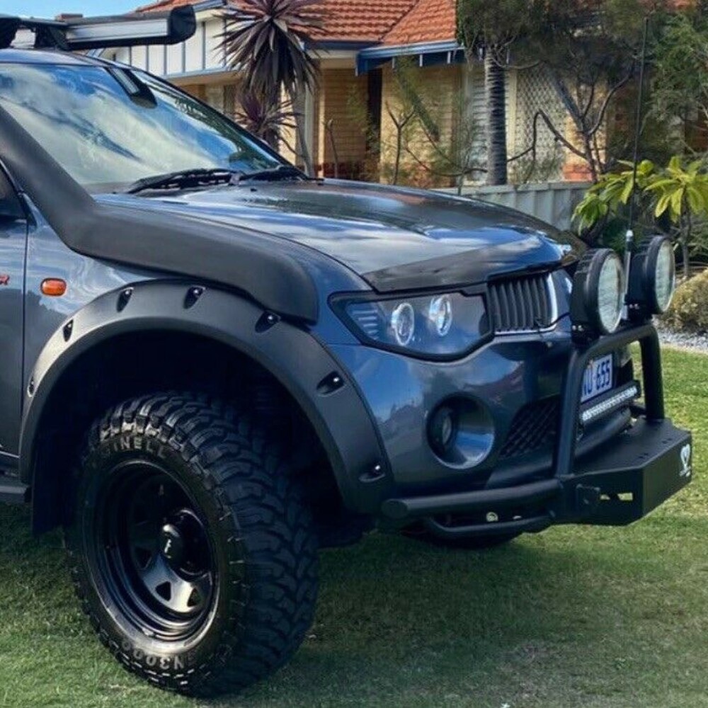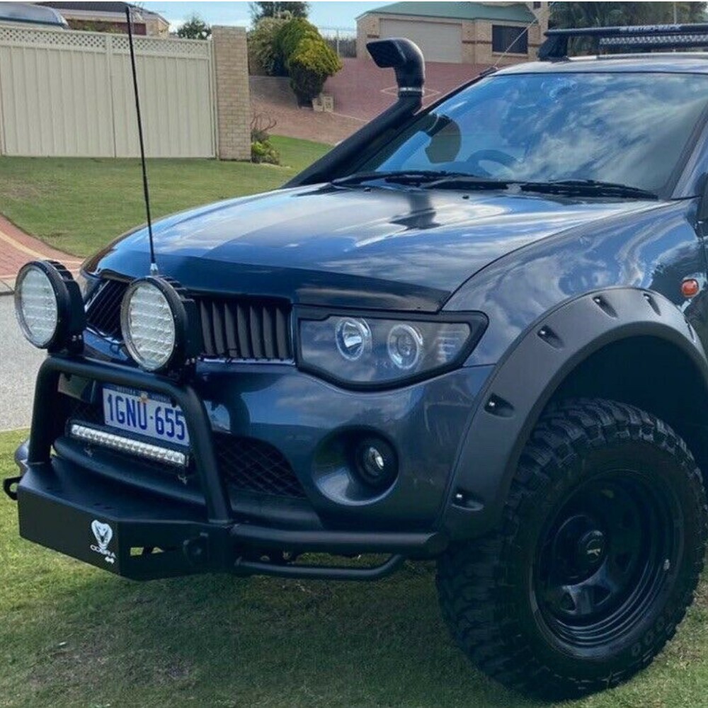 Introducing the all-new and updated Cobra 4x4 Nudge bar, specifically designed to fit Triton MN and ML models, as well as the Challenger PB. This sleek and practical accessory is a must-have for any 4wd enthusiast, offering enhanced front-end protection while seamlessly blending with your vehicle's original design.