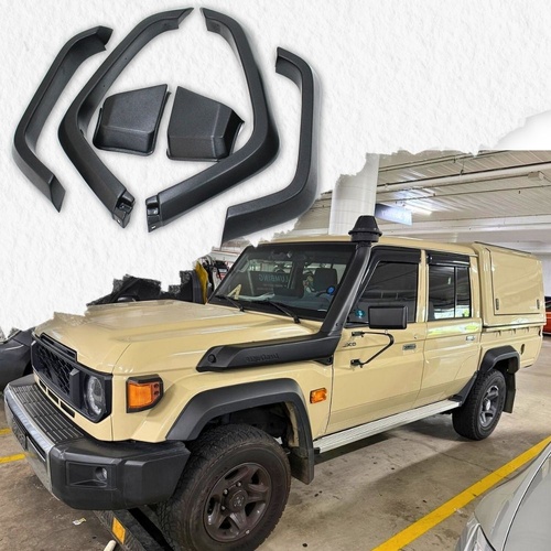 Upgrade your Landcruiser 79 Series 2024 Onwards Facelift models with these premium OEM Style Textured Matte Black Fender Flares. Crafted from durable ABS plastic with a textured finish, these fender flares are designed to seamlessly blend with your vehicle's aesthetics while providing superior protection against road debris and harsh weather conditions.
