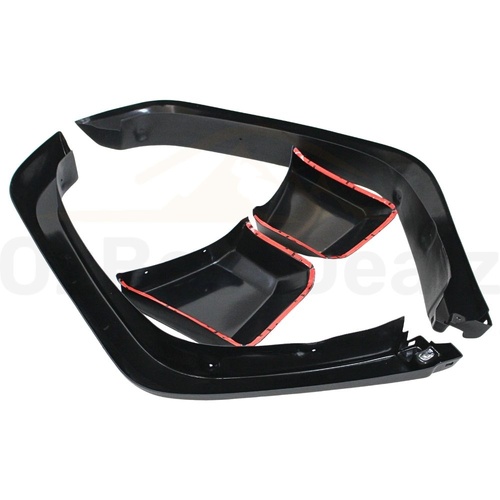 Installation: Professional installation is required to ensure a correct fit. They are installed by gluing the rubbers to the flares and then gluing them directly to the guards using sikaflex 227. This sikaflex can be removed without damaging paint. They are also screwed in from under. For those wanting to use existing holes from underneath the car, you can drill new holes on the flares to match. Flares are a textured finish. You can also get them colour-coded at a paint shop after prepping.