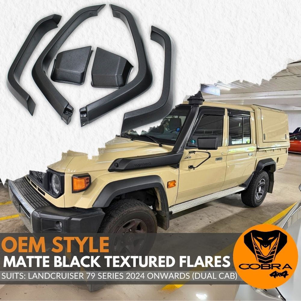 Enhance Your Landcruiser 79 Series 2024 Onwards with OEM Style Textured Matte Black Fender Flares!
