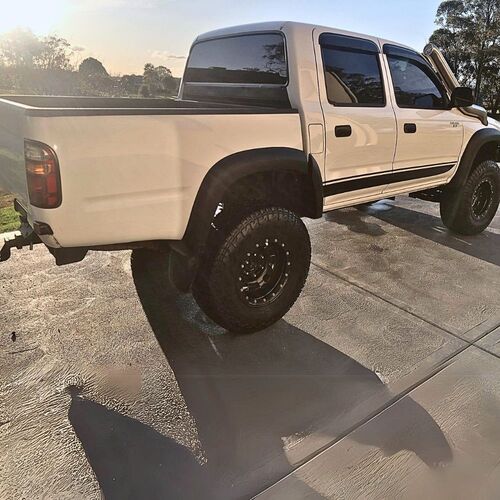 Cobra 4x4 is proud to introduce the all-new OEM style black textured finish flares to suit the Toyota Hilux 1998 - 2005 Dual Cab Models. These flares will add the extra wheel cover you need. We are the first to introduce these aftermarket flares that won't cost you an arm and a leg but will give you a similar look as those flares worth $600or more. You can use these for the extra wheel cover or just to enhance the look of your car. We think they look great as they are or if you like you can get them painted to suit your car.