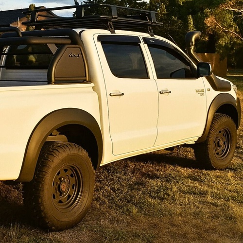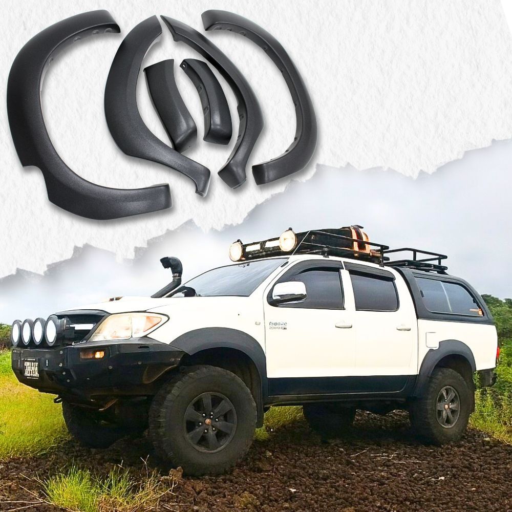 The all-new OEM style black textured finish flares to suit the Toyota Hilux 2005 - 2011 Dual Cab Models. These flares will add the extra wheel cover you need. We are the first to introduce these aftermarket flares that won't cost you an arm and a leg but will give you a similar look as those flares worth $600 or more. You can use these for the extra wheel cover or just to enhance the look of your car. We think they look great as they are or if you like you can get them painted to suit your car.