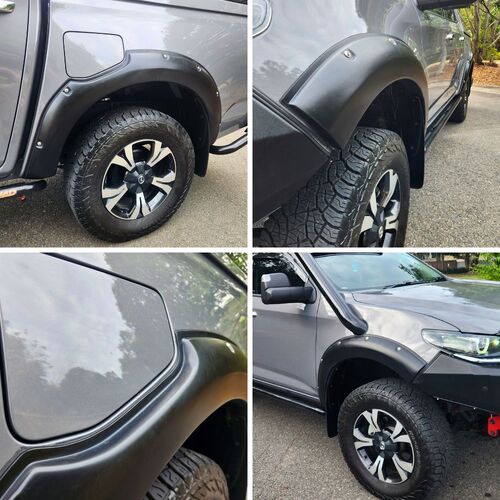 Cobra 4x4 pocket style matte black fender flares to suit Mazda BT50 dual cab 2021 onward models.