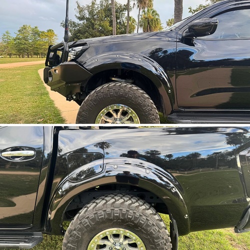 Personalize Your Ride: These flares are ideal for those looking to add larger wheels while keeping the original look and complying with legal requirements. Although they are not colour-coded, they closely match black Navaras, offering an affordable option for those who prefer not to invest in painting.
