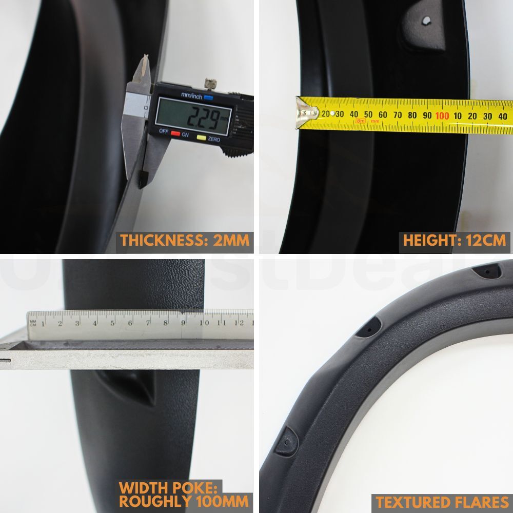 These flares protrude 10 cm out from the top of the guards, adding extra wheel cover for those wanting to add larger wheels. They are made from 2 mm ABS plastic.
