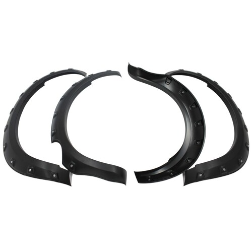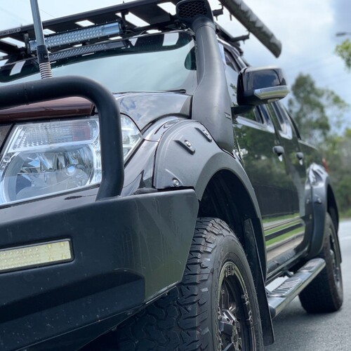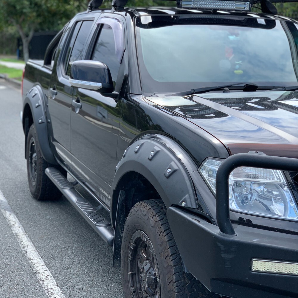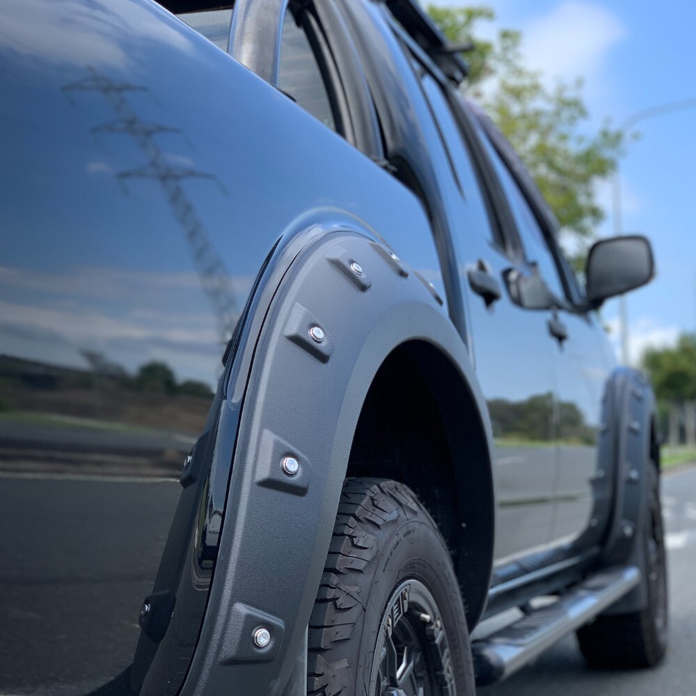 All new pocket style flares to suit D40 2008 to 2014 dual cab models. Made from 2 -2.5mm thick ABS textured plastic to protect your guards while adding some extra wheel cover to suit larger wheels.