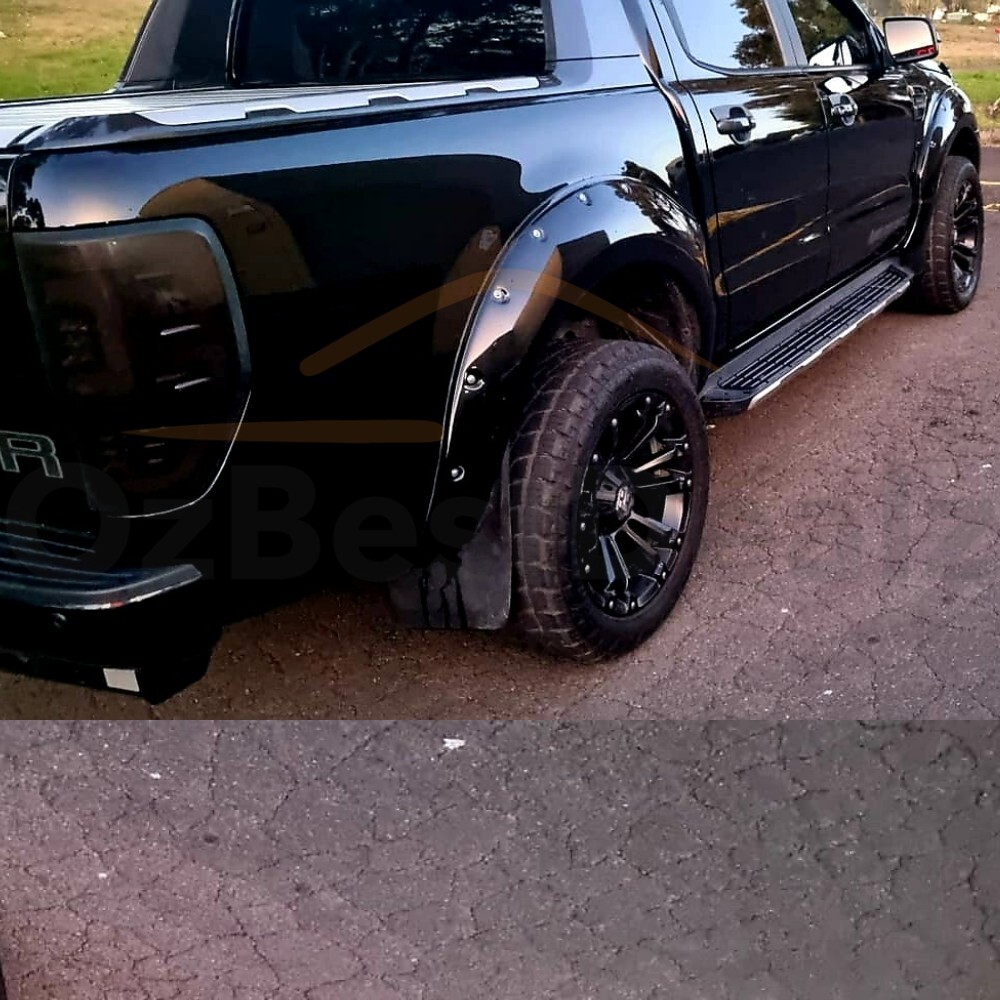 Installation: This item requires professional installation to ensure they are fitted correctly. They are installed by gluing to the guards then screwed in from under. Drilling into guards not required. If you like to use existing holes from under, you can drill new holes on the flares to match. Screws are for decorative purposes only. This color will go well with the black Ranger however it is not color-coded.