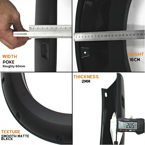 Installation: This item requires professional installation to ensure they are fitted correctly. They are installed by gluing to the guards and then screwed in from under. Drilling into guards is not required. If you like to use existing holes from under, you can drill new holes on the flares to match. If you have a bullbar you can trim the flares to suit your bullbar style.